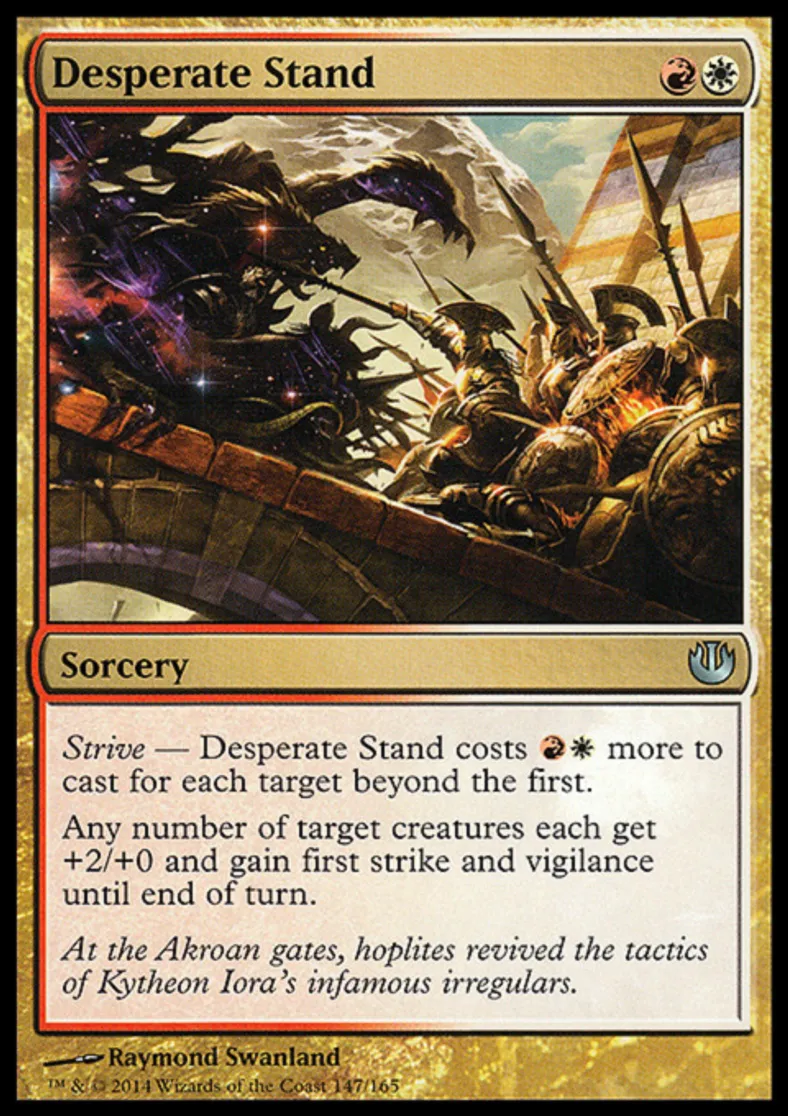 Magic: the Gathering (mtg) Uncommon Sorcery Desperate Stand from Journey into Nyx (JOU) last updated 2026-02-21 17:16:32