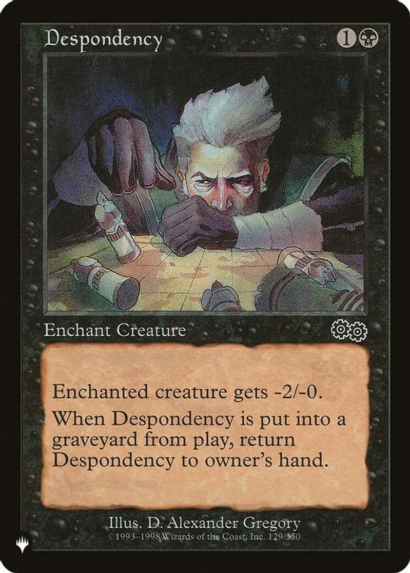 Magic: the Gathering (mtg) Common enchant creature Despondency from The List Reprints (PLIST) last updated 2026-02-21 15:29:05