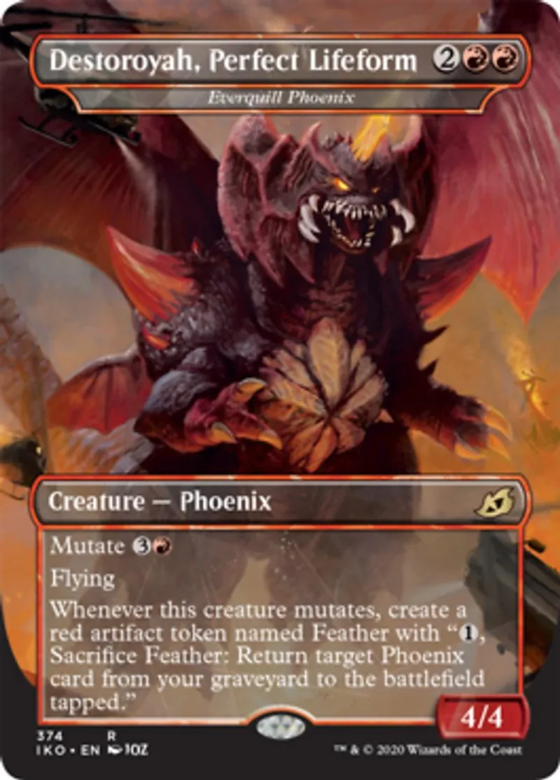 Magic: the Gathering (mtg) Rare Creature - Phoenix Destoroyah, Perfect Lifeform - Everquill Phoenix from Ikoria: Lair of Behemoths (IKO) last updated 2026-02-24 14:30:33