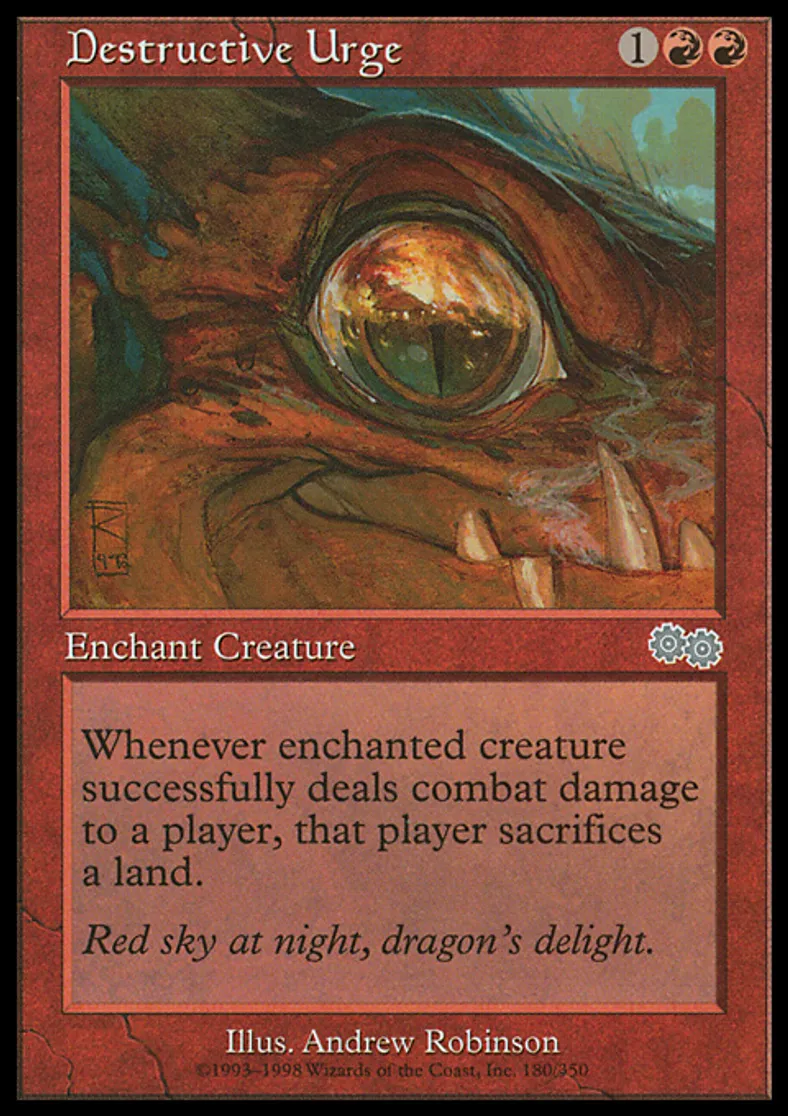 Magic: the Gathering (mtg) Uncommon Enchantment - Aura Destructive Urge from Urza's Saga (USG) last updated 2026-02-25 15:49:02