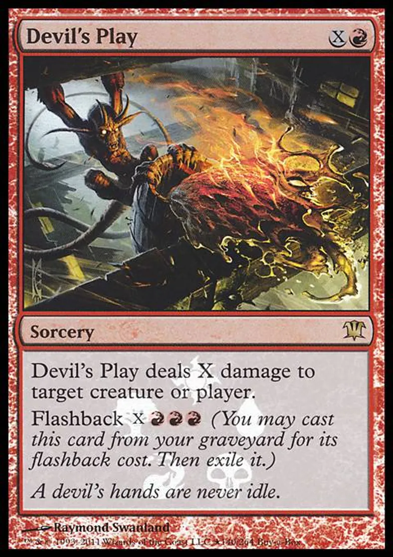 | Oracle Text | Devil's Play deals X damage to target creature or player.