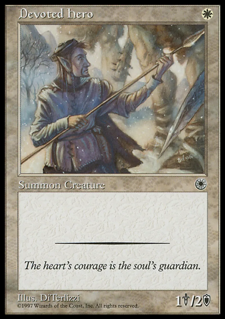 Magic: the Gathering (mtg) Common Creature - Elf Soldier Devoted Hero from Portal (POR) last updated 2026-02-21 17:31:06