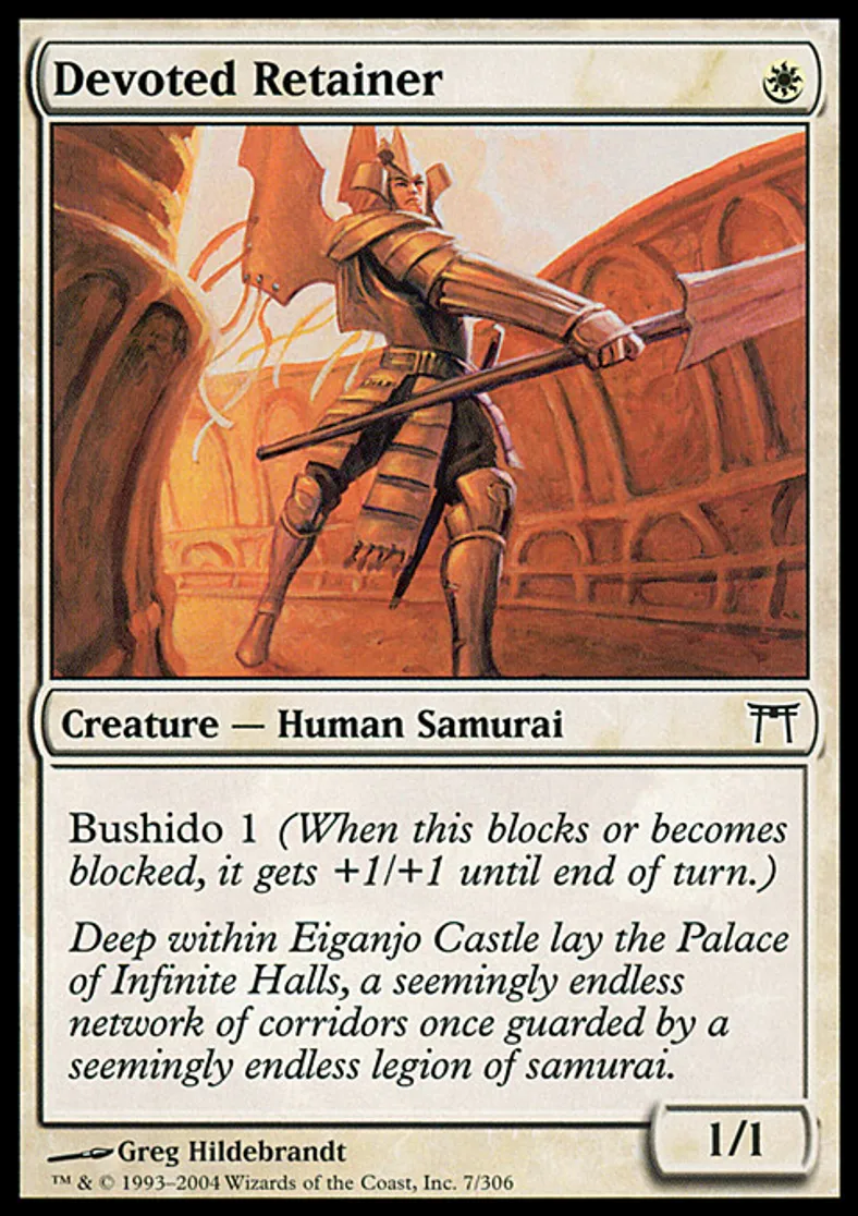 Magic: the Gathering (mtg) Common Creature - Human Samurai Devoted Retainer from Champions of Kamigawa (CHK) last updated 2026-02-24 15:52:32