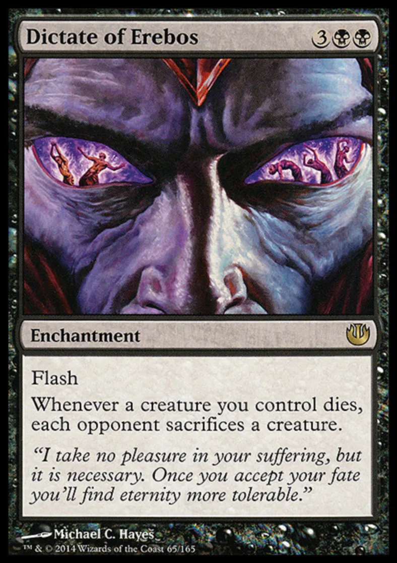 Magic: the Gathering (mtg) Rare Enchantment Dictate of Erebos from Journey into Nyx (JOU) last updated 2026-02-25 14:36:37