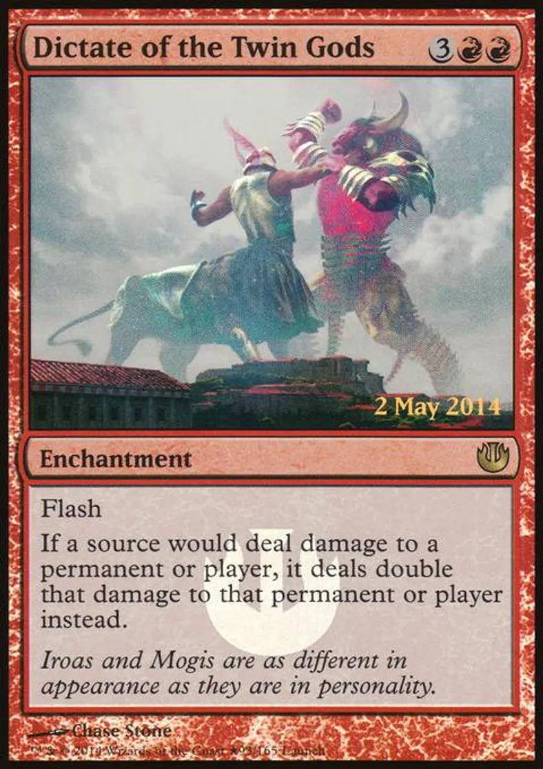 Magic: the Gathering (mtg) Special Enchantment Dictate of the Twin Gods from Launch Party & Release Event Promos (pREL2) last updated 2026-02-21 17:19:01