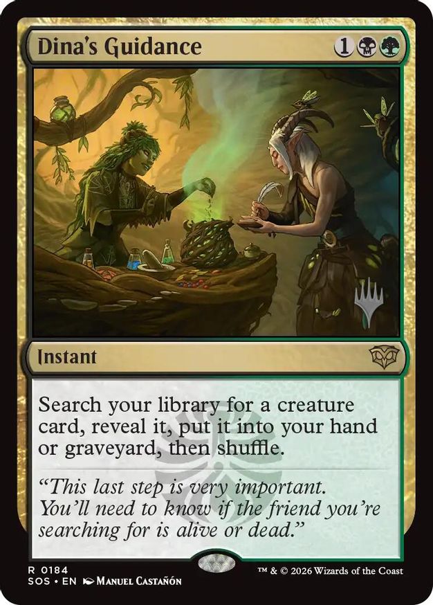 Magic: the Gathering (mtg) Rare instant Dina's Guidance from Promo Pack: Secrets of Strixhaven (PPSOS) last updated 2026-04-17 21:11:18