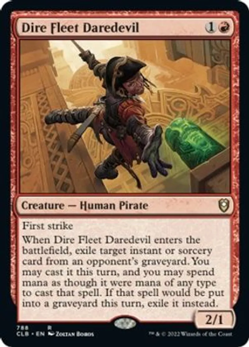 Magic: the Gathering (mtg) Rare Creature — Human Pirate Dire Fleet Daredevil from Commander Legends: Battle for Baldur's Gate (CLB) last updated 2026-02-21 16:08:02