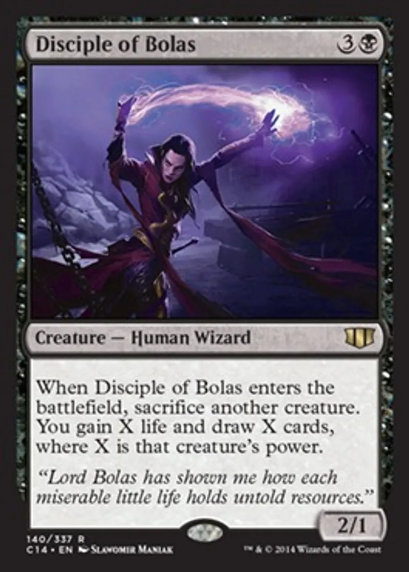 | Oracle Text | When Disciple of Bolas enters the battlefield, sacrifice another creature. You gain X life and draw X cards, where X is that creature's power. | ||