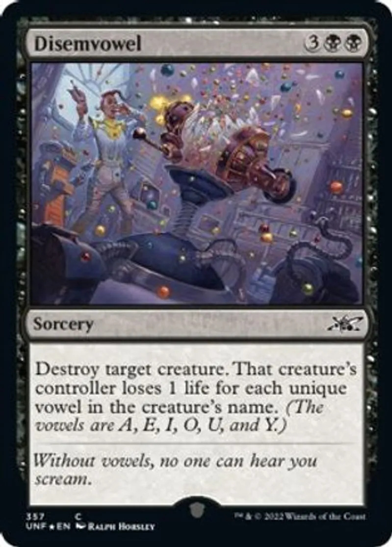 Disemvowel (Galaxy Foil) is a Common in the set Unfinity.