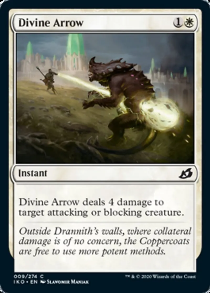 | Oracle Text | Divine Arrow deals 4 damage to target attacking or blocking creature. | ||