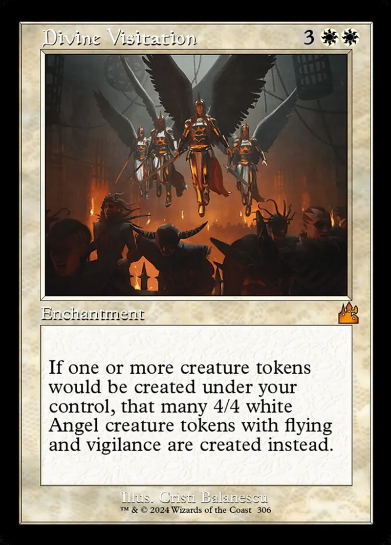 Divine Visitation (Retro Frame) is a mythic in the set Ravnica Remastered.