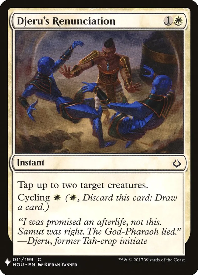 Djeru's Renunciation is a common in the set Mystery Booster.