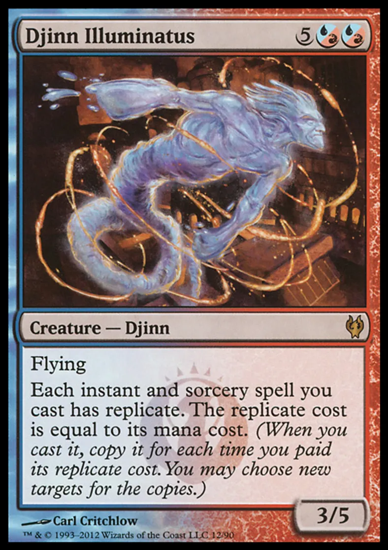 | Oracle Text | ({{ub}} can be paid with either {{u}} or {{r}}.) Flying Each instant and sorcery spell you cast has replicate. The replicate cost is equal to its mana cost. (When you cast it, copy it for each time you paid its replicate cost. You may choose new targets for the copies.) | ||