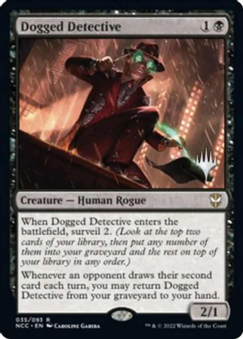 | Oracle Text | When Dogged Detective enters the battlefield, surveil 2. (Look at the top two cards of your library, then put any number of them into your graveyard and the rest on top of your library in any order.)