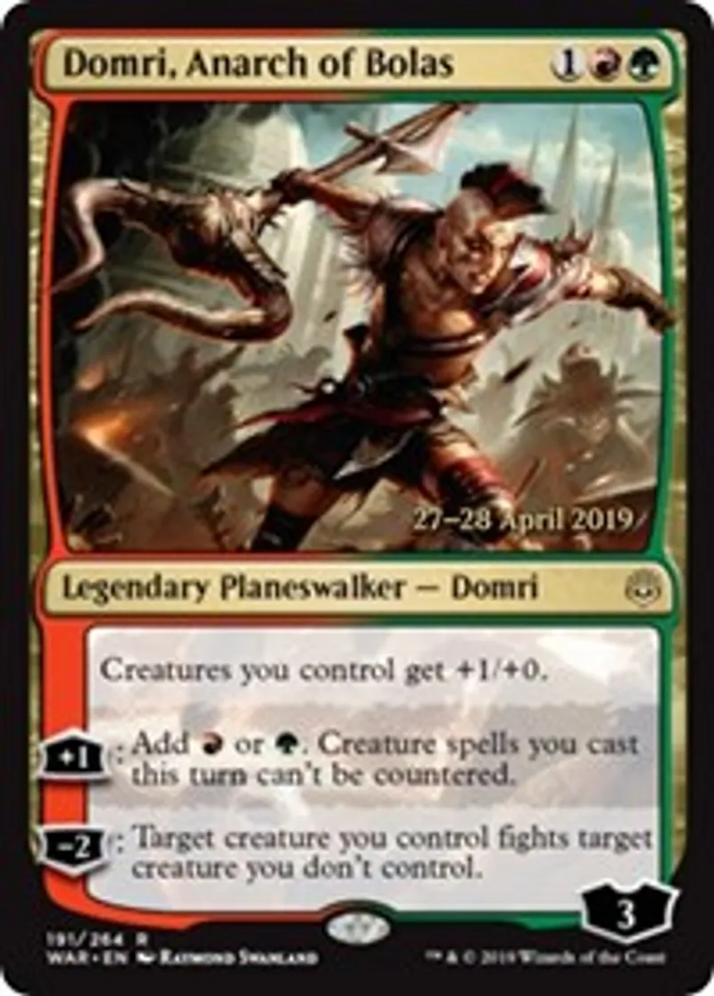 Magic: the Gathering (mtg) Rare Legendary Planeswalker — Domri Domri, Anarch of Bolas from Prerelease Cards (pPRE) last updated 2026-02-24 14:39:32
