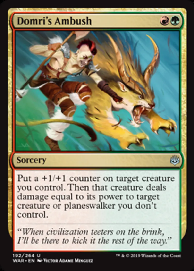 Magic: the Gathering (mtg) Uncommon Sorcery Domri's Ambush from War of the Spark (WAR) last updated 2026-02-21 16:57:32
