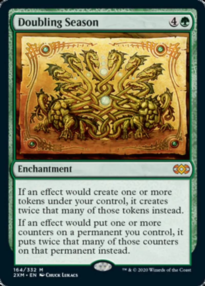 Magic: the Gathering (mtg) Mythic Rare Enchantment Doubling Season from Double Masters (2XM) last updated 2026-02-07 14:33:02