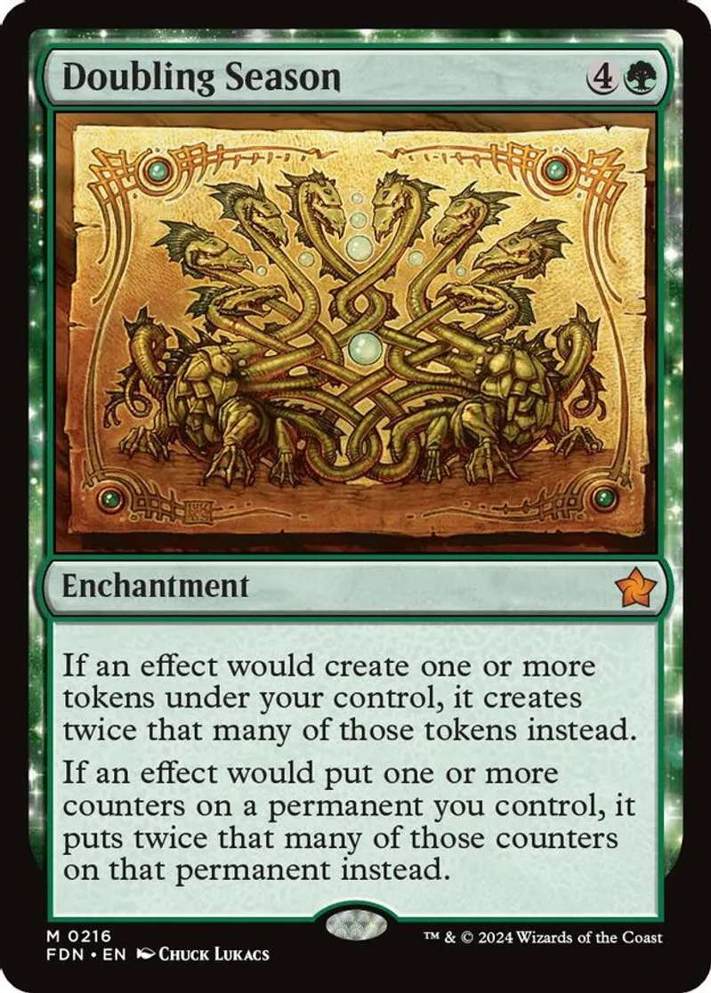 Magic: the Gathering (mtg) Mythic Rare enchantment Doubling Season from Foundations (FDN) last updated 2026-04-17 14:24:05