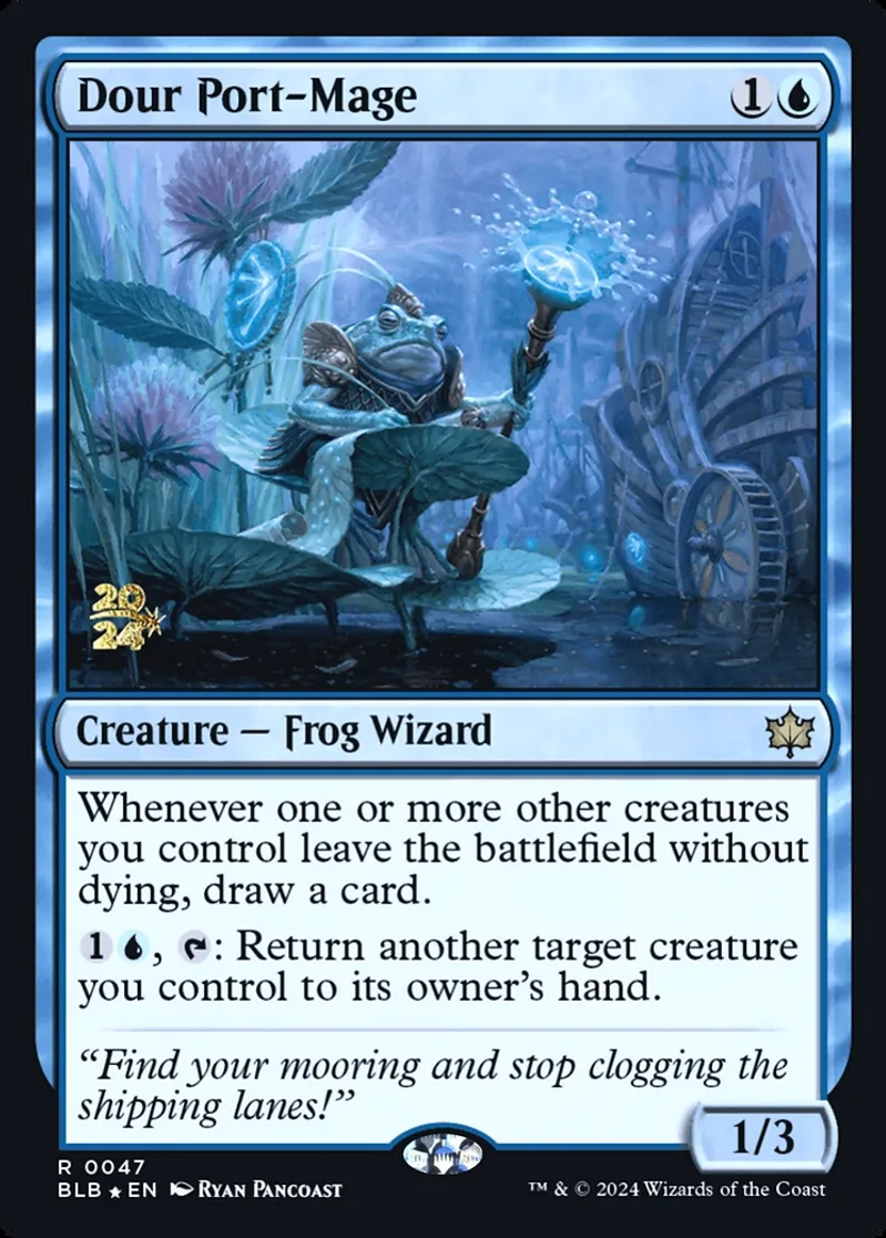 Magic: the Gathering (mtg) Rare Creature — Frog Wizard Dour Port-Mage from Prerelease Cards (pPRE) last updated 2025-12-18 14:18:31