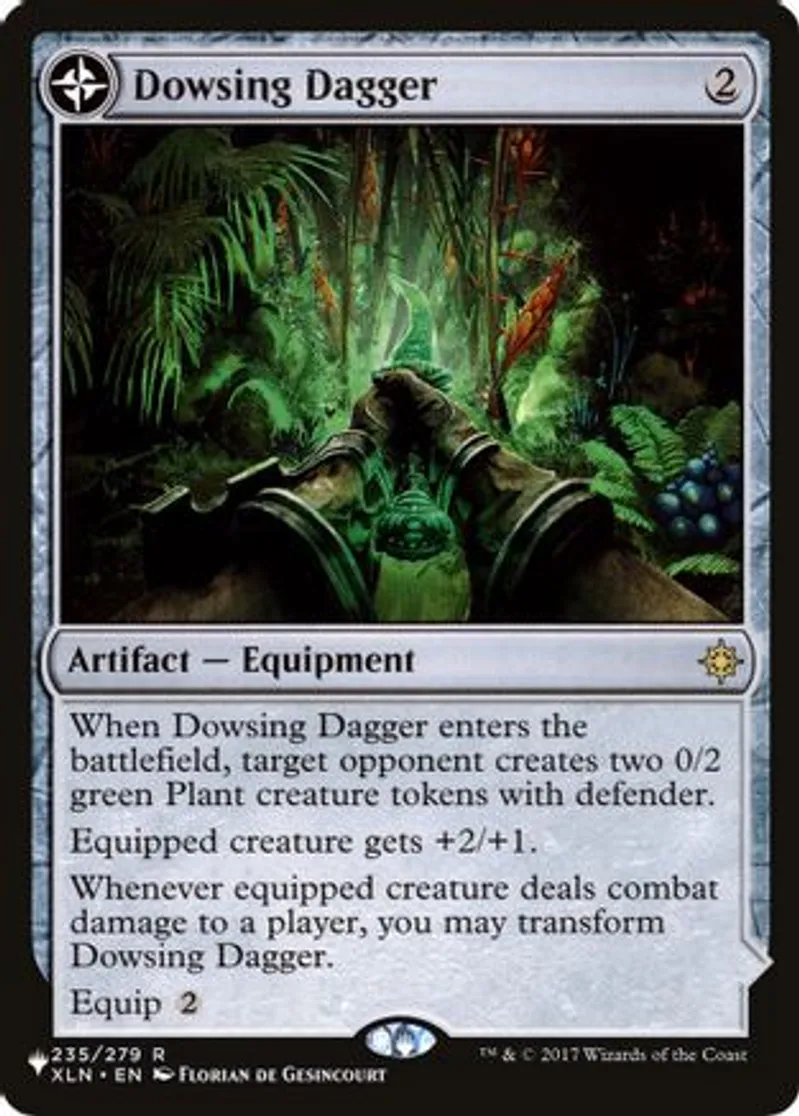 Dowsing Dagger is a Rare in the set Secret Lair Commander: From Cute to Brute.