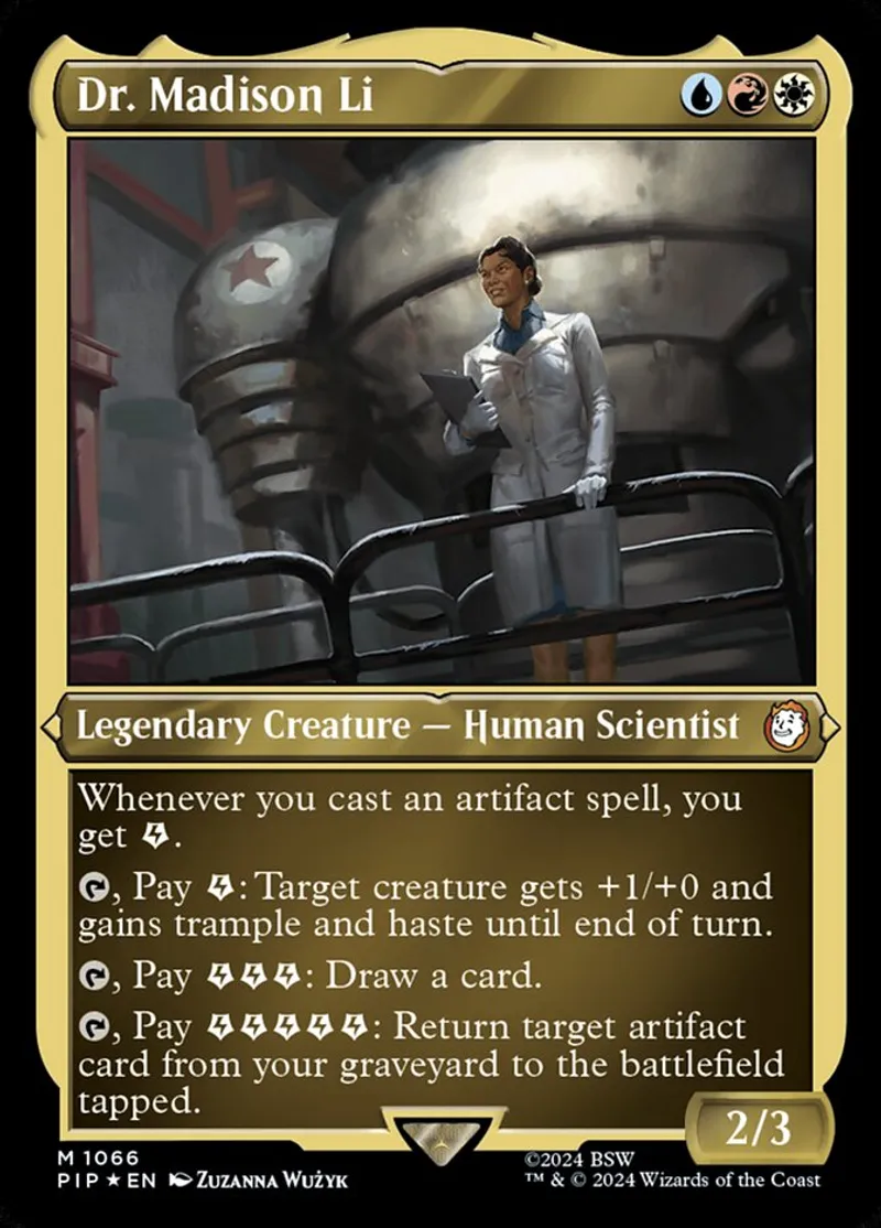 Magic: the Gathering (mtg) Mythic Rare Legendary Creature — Human Scientist Dr. Madison Li from Universes Beyond: Fallout (pip) last updated 2025-12-13 15:58:01