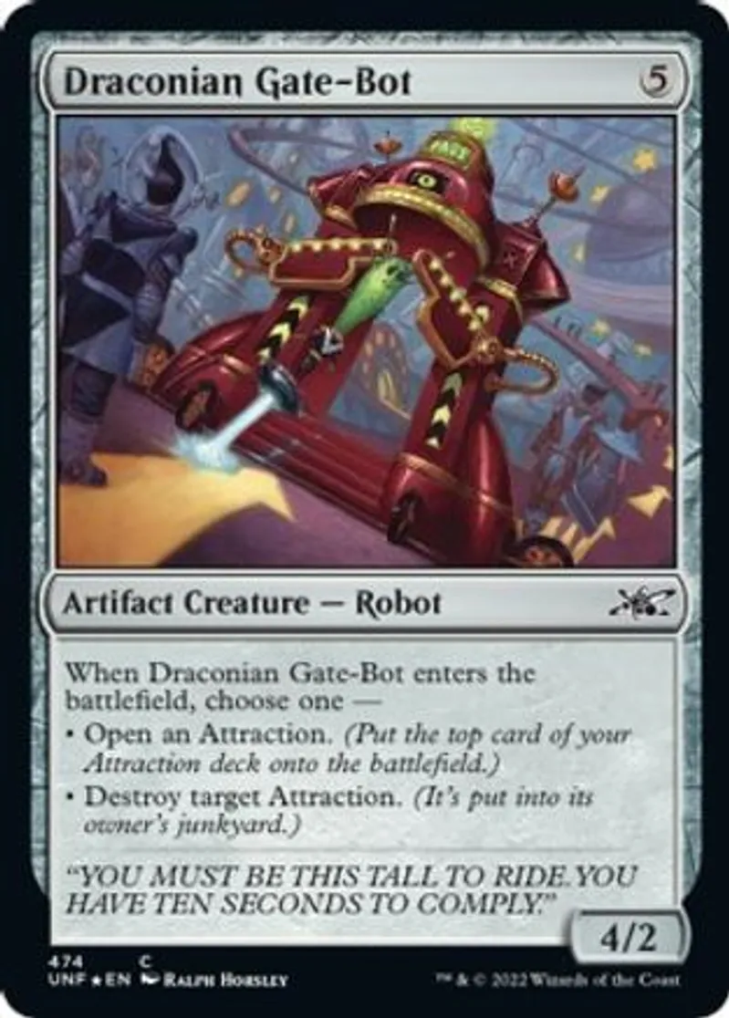 Magic: the Gathering (mtg) Common Artifact Creature — Robot Draconian Gate-Bot from Unfinity (UNF) last updated 2026-02-24 15:39:02