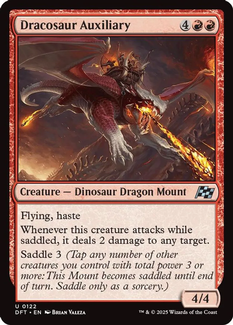 Magic: the Gathering (mtg) Uncommon creature — dinosaur dragon mount Dracosaur Auxiliary from Aetherdrift (DFT) last updated 2026-02-21 15:36:36
