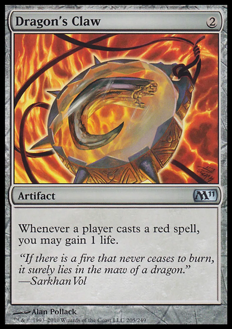 Magic: the Gathering (mtg) Uncommon Artifact Dragon's Claw from Magic 2011 (M11) last updated 2026-02-21 17:50:03