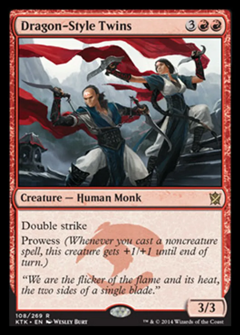 Magic: the Gathering (mtg) Rare Creature - Human Monk Dragon-Style Twins from Khans of Tarkir (KTK) last updated 2026-02-21 17:18:02
