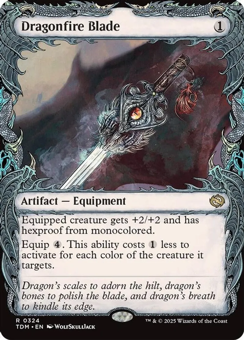 Magic: the Gathering (mtg) Rare artifact — equipment Dragonfire Blade from Tarkir: Dragonstorm (TDM) last updated 2025-12-18 15:17:31