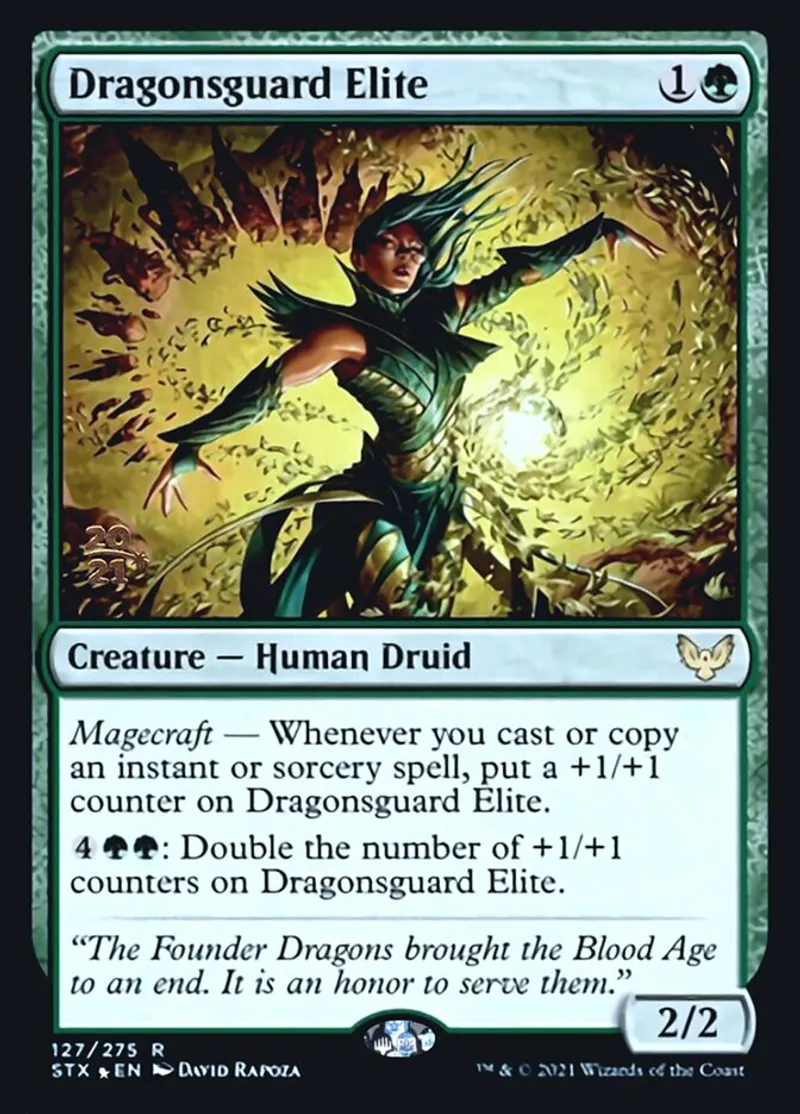 | Oracle Text | Magecraft — Whenever you cast or copy an instant or sorcery spell, put a +1/+1 counter on Dragonsguard Elite.
