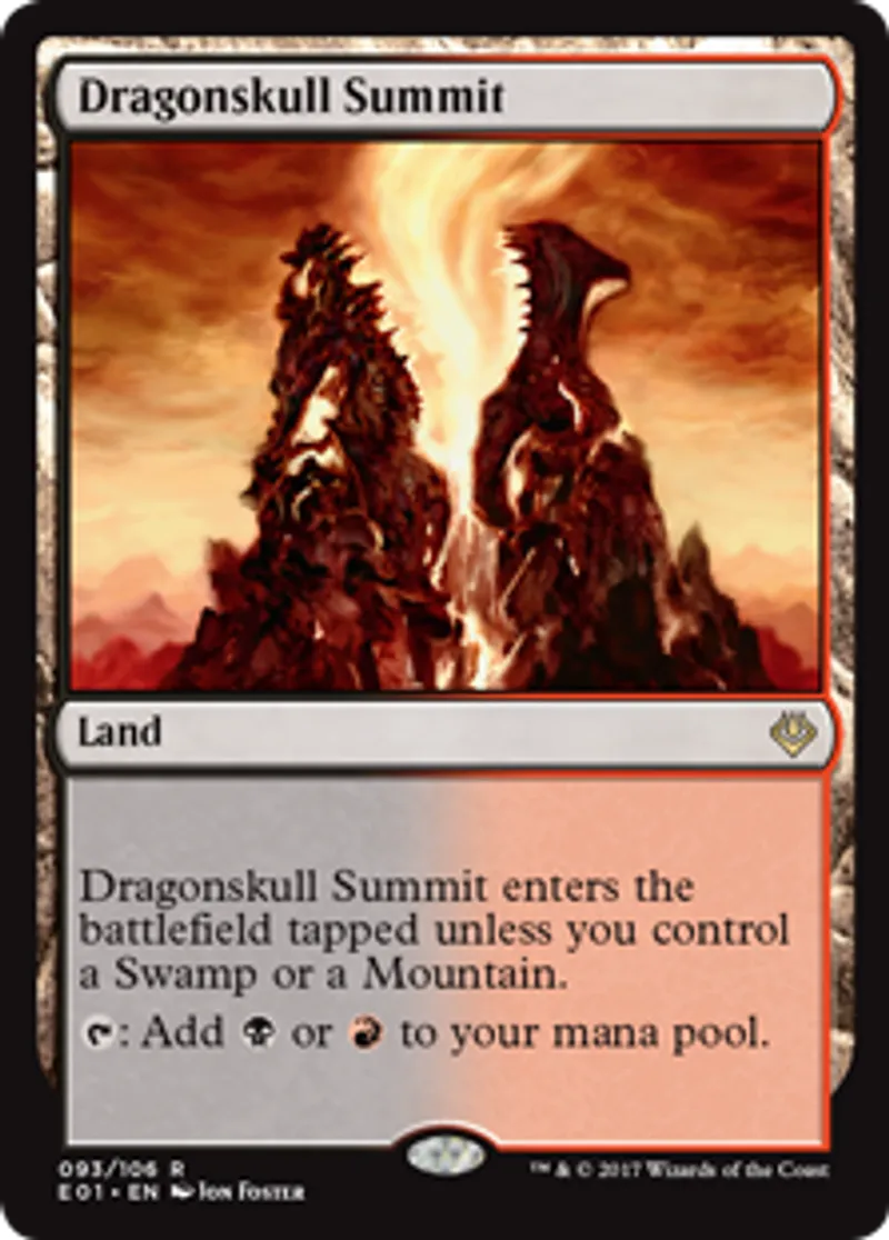 | Oracle Text | Dragonskull Summit enters the battlefield tapped unless you control a Swamp or a Mountain. {{t}}: Add {{b}} or {{r}} to your mana pool. | ||