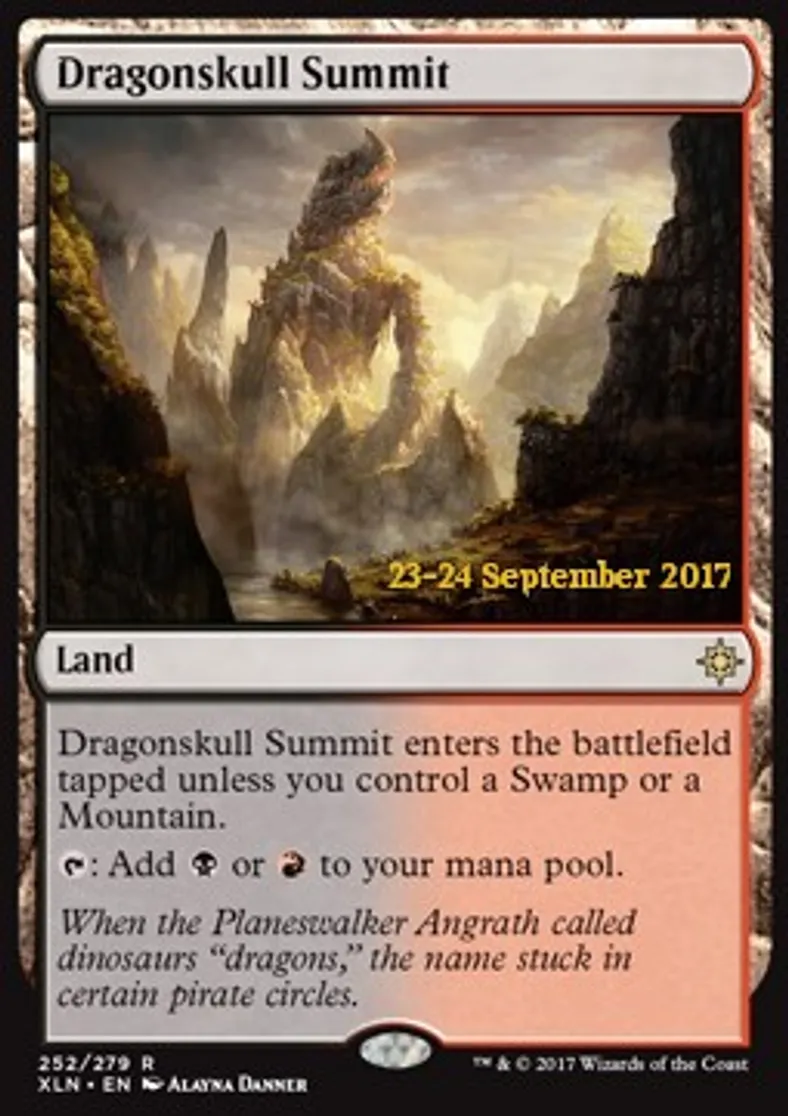 | Oracle Text | Dragonskull Summit enters the battlefield tapped unless you control a Swamp or a Mountain. {{T}}: Add {{B}} or {{R}} to your mana pool. | ||