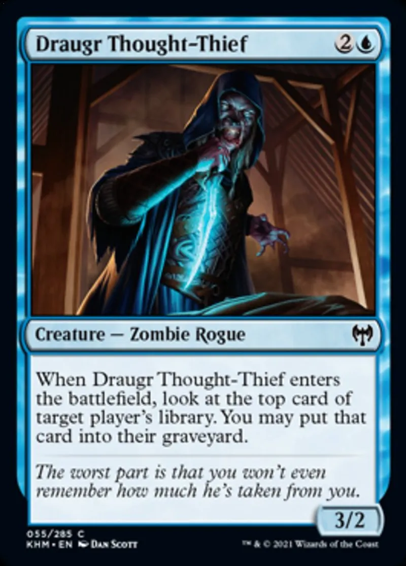 Magic: the Gathering (mtg) common Creature — Zombie Rogue Draugr Thought-Thief from Kaldheim (khm) last updated 2026-02-21 16:32:33