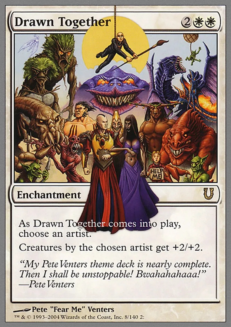| Oracle Text | As Drawn Together comes into play, choose an artist. Creatures by the chosen artist get +2/+2. | ||
