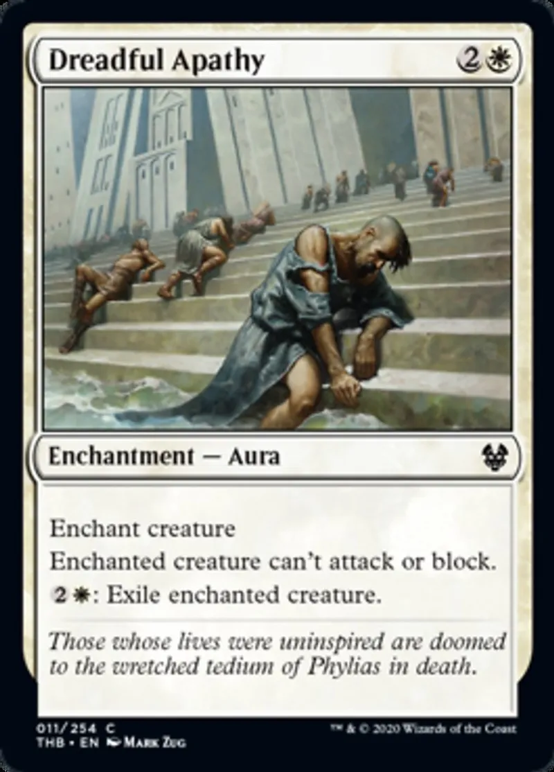Magic: the Gathering (mtg) common Enchantment — Aura Dreadful Apathy from Theros Beyond Death (thb) last updated 2026-02-21 17:01:02