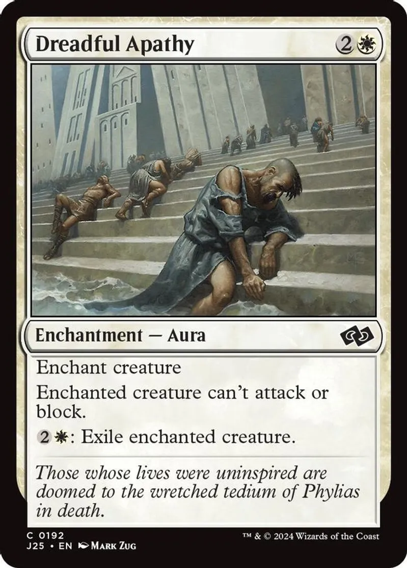 Magic: the Gathering (mtg) Common enchantment — aura Dreadful Apathy from Foundations Jumpstart (J25) last updated 2026-02-21 15:33:32