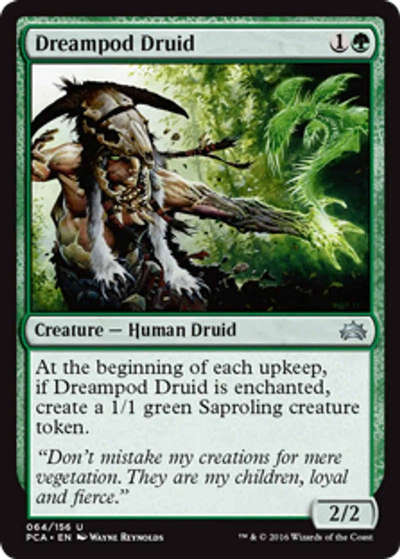 | Oracle Text | At the beginning of each upkeep, if Dreampod Druid is enchanted, create a 1/1 green Saproling creature token. | ||