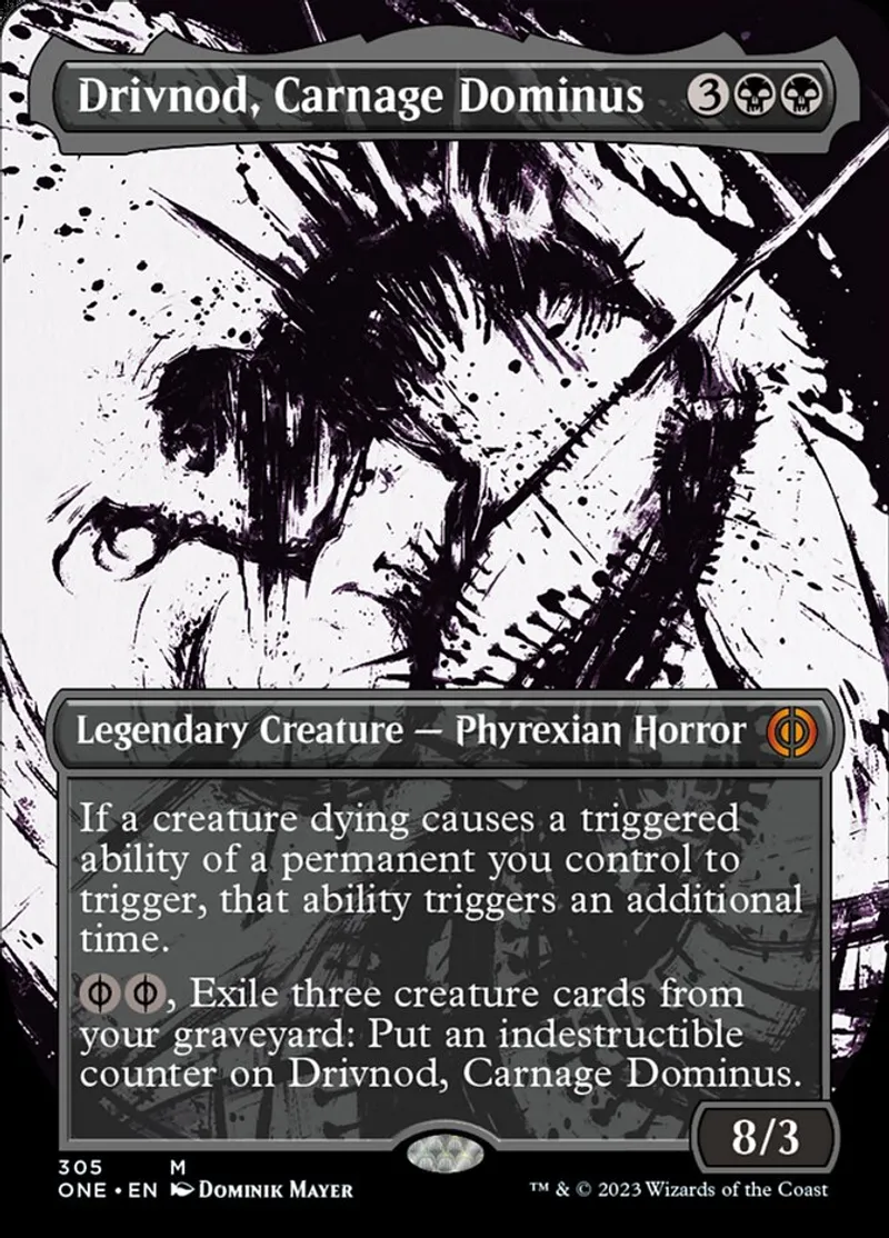 Magic: the Gathering (mtg) Mythic Rare Legendary Creature — Phyrexian Horror Drivnod, Carnage Dominus from Phyrexia: All Will Be One (one) last updated 2026-02-25 14:27:02
