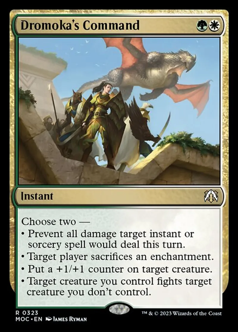Magic: the Gathering (mtg) Rare Instant Dromoka's Command from March of the Machine Commander (moc) last updated 2026-02-25 15:42:36