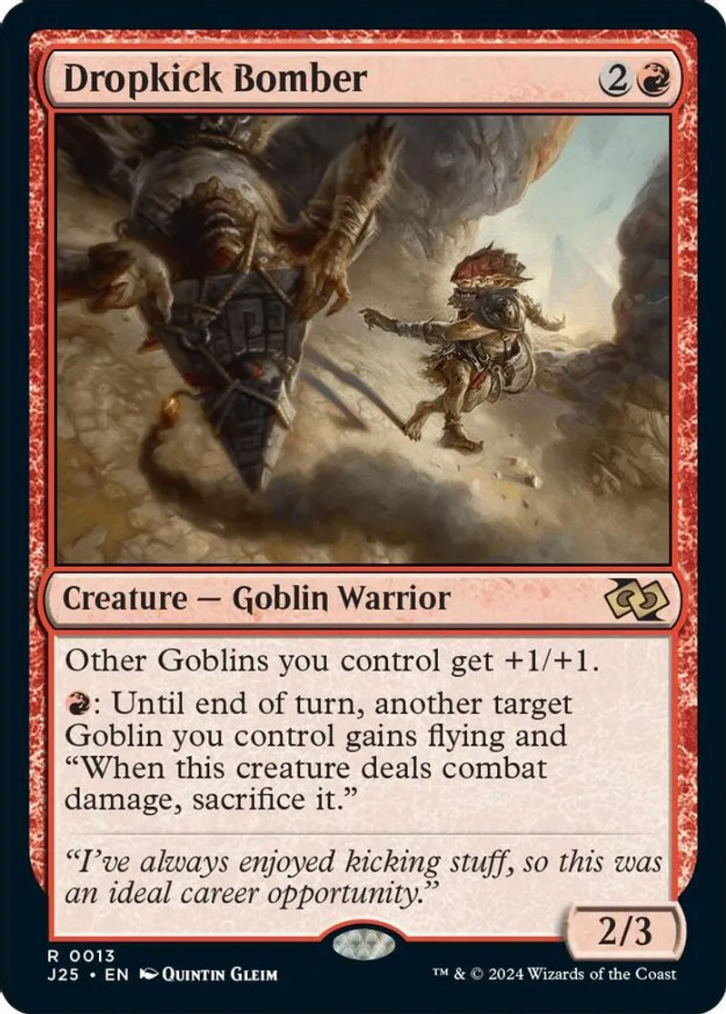Magic: the Gathering (mtg) Rare creature — goblin warrior Dropkick Bomber from Foundations Jumpstart (J25) last updated 2025-12-18 14:48:32
