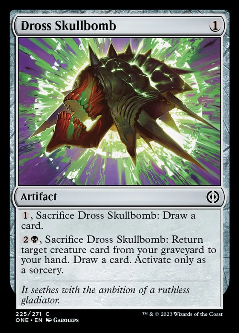 Dross Skullbomb is a common in the set Phyrexia: All Will Be One.