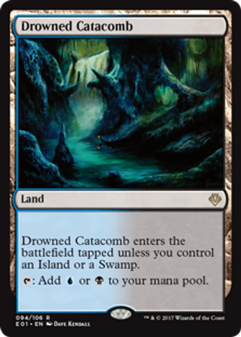 | Oracle Text | Drowned Catacomb enters the battlefield tapped unless you control an Island or a Swamp. {{t}}: Add {{u}} or {{b}} to your mana pool. | ||
