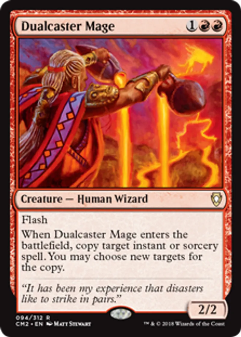 | Oracle Text | Flash When Dualcaster Mage enters the battlefield, copy target instant or sorcery spell. You may choose new targets for the copy. | ||