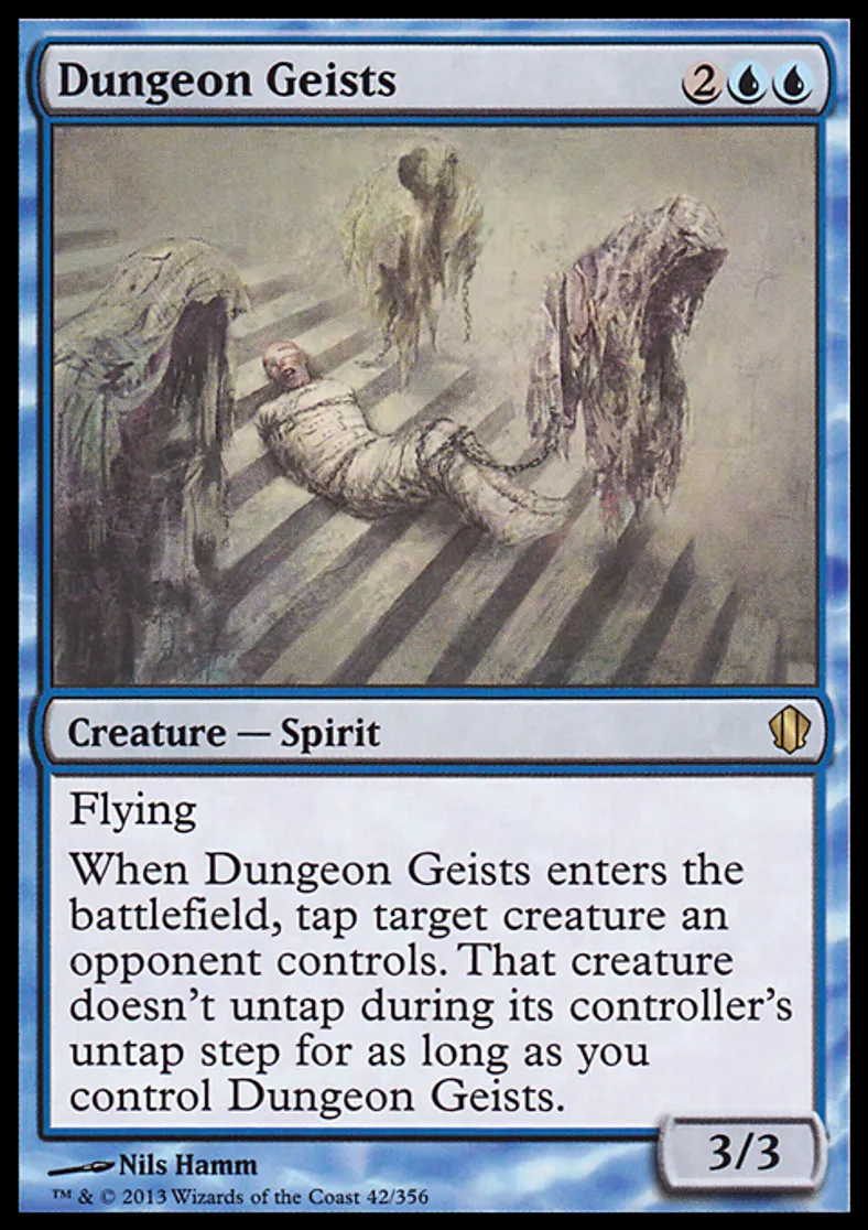 | Oracle Text | Flying When Dungeon Geists enters the battlefield, tap target creature an opponent controls. That creature doesn't untap during its controller's untap step for as long as you control Dungeon Geists. | ||