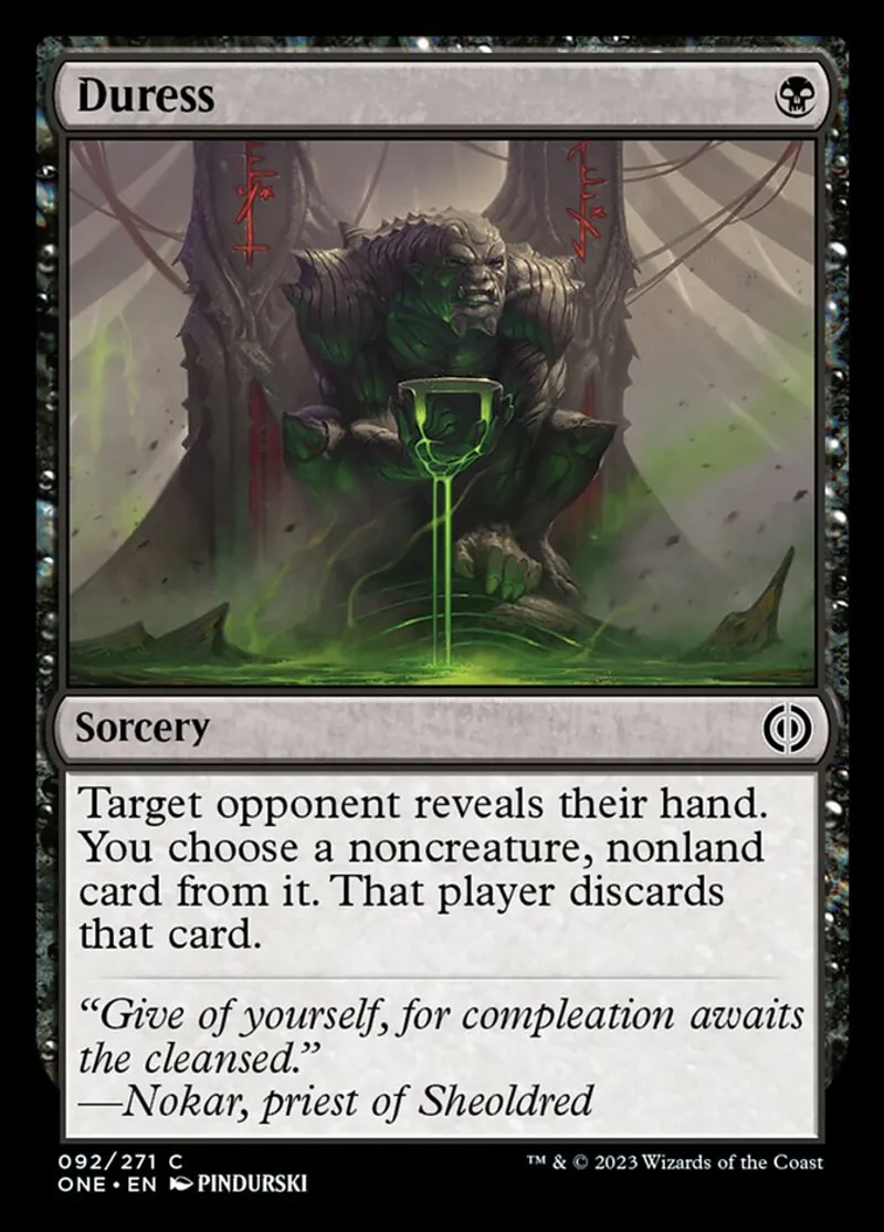 Magic: the Gathering (mtg) common Sorcery Duress from Phyrexia: All Will Be One (one) last updated 2026-02-21 16:20:32