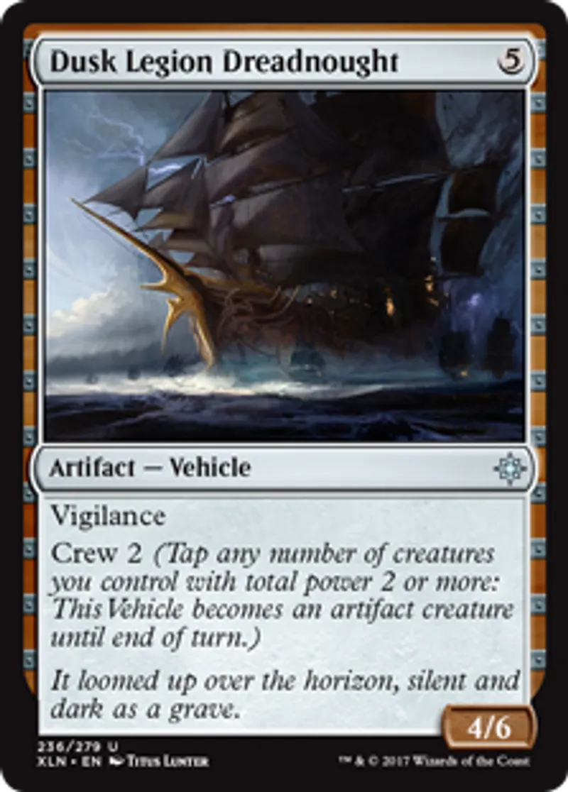 Magic: the Gathering (mtg) Uncommon Artifact - Vehicle Dusk Legion Dreadnought from Ixalan (XLN) last updated 2026-02-21 16:48:04
