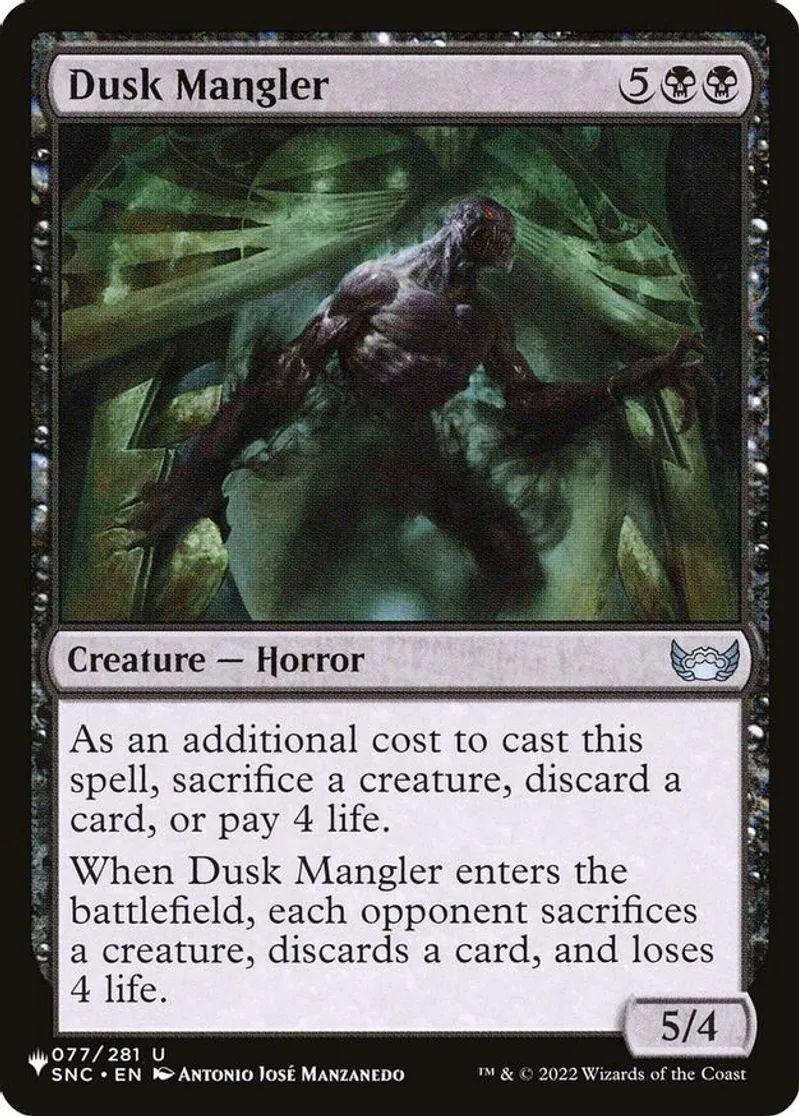 Magic: the Gathering (mtg) Uncommon creature — horror Dusk Mangler from The List Reprints (PLIST) last updated 2026-02-21 15:29:05