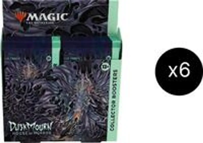 | Flavor Text | Dare to enter Duskmourn, a plane-enveloping House that sets the scene for your opponent’s greatest fears to come to life! <br> Collector Boosters are a shortcut to the coolest cards in a set, with packs full of Rare cards, shiny foil cards, and special alt-art, alt-frame cards. Horrify your opponents with Borderless, Double Exposure, Paranormal Frame treatments, Full-Art Manor lands, and Mirror Monster cards. You might even discover cards from the first-ever Japan Showcase. <br> <br><strong>Contents</strong>: <br>• Each Duskmourn: House of Horror - Play Booster Display includes 12 booster packs, each containing 15 cards <br>• Collector Boosters are the only place you can find certain coveted card styles, including the possibility of extended-art cards or even a card with the special Textured Foil Double Exposure treatment <br> <br>Each Duskmourn: House of Horror - Collector Booster Display Case contains 6 booster displays | ||