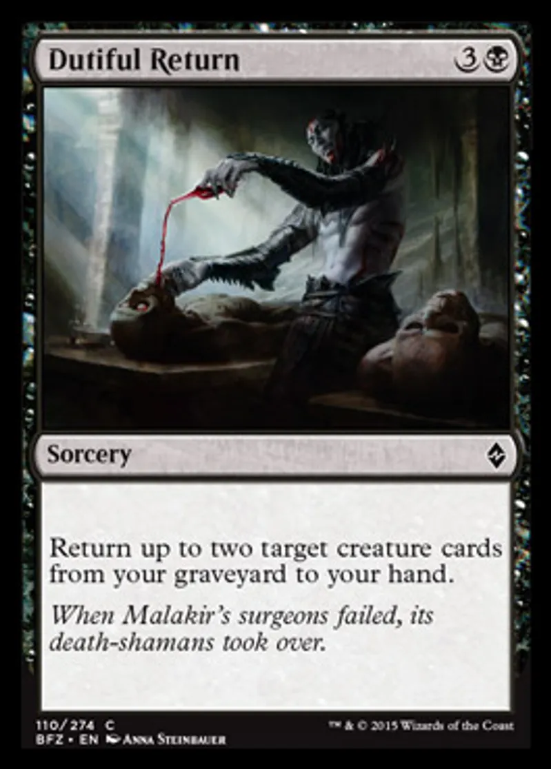 Magic: the Gathering (mtg) Common Sorcery Dutiful Return from Battle for Zendikar (BFZ) last updated 2026-02-21 17:22:02